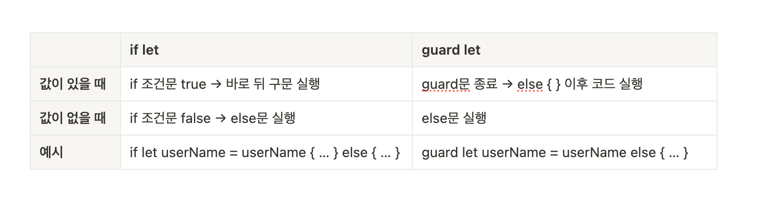어찌 보면 메서드 자체가 guard문의 if 처리문이기 때문에 guard에서 조건을 만족한 변수는 이후 코드에서 자유롭게 사용할 수도 있고요!